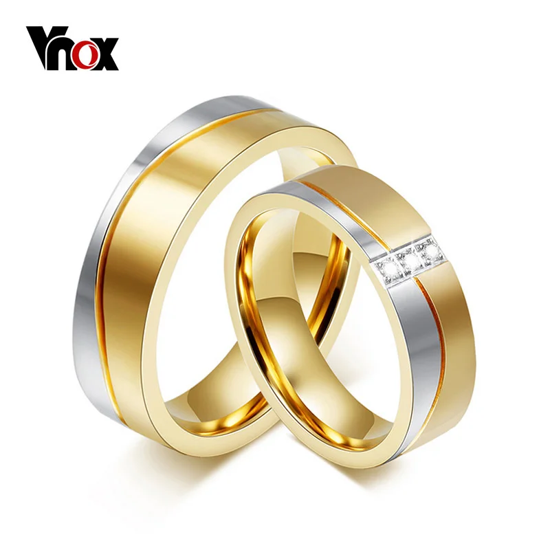 Vnox 1 пара обручальное кольцо Набор для пара золото Цвет Нержавеющая сталь cz женский и мужской ювелирные изделия