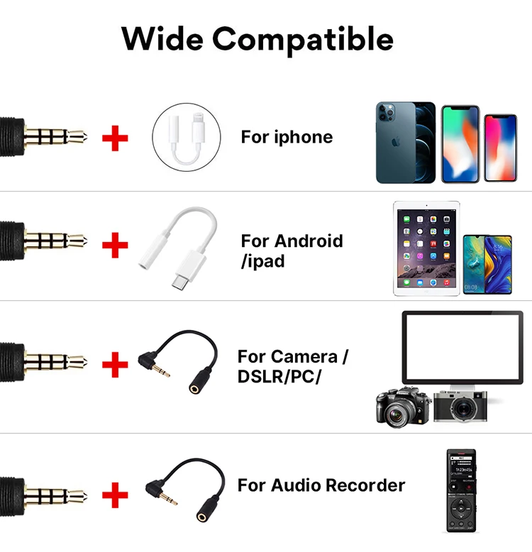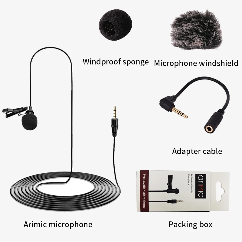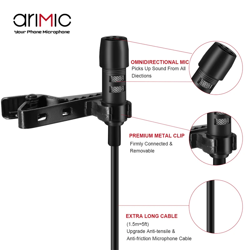Петличный микрофон Ulanzi Arimic, 1,5 м6 м, с клипсой, конденсаторный микрофон, Кабель-адаптер TRRS для iPhone, Android, смартфонов, iPad, DSLR