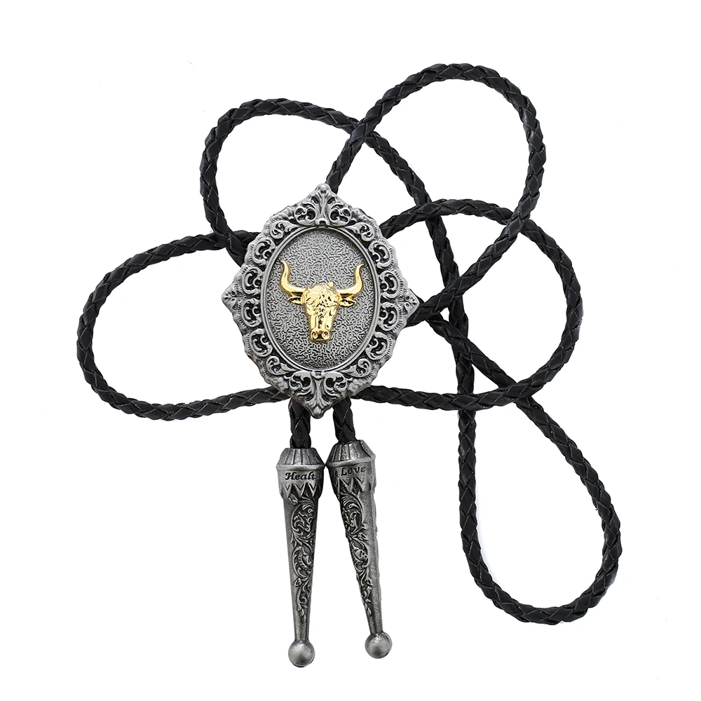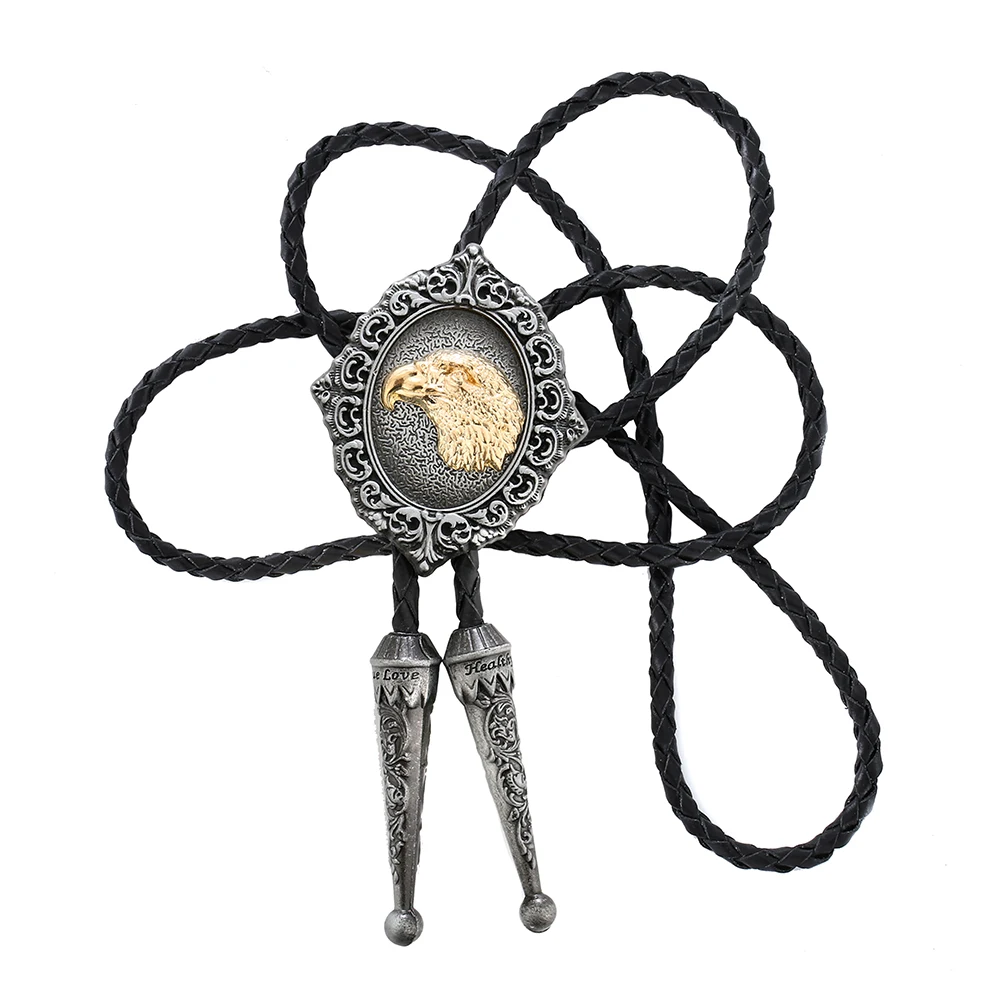 Мужской галстук в стиле вестерн Боло с кожаной веревкой, золотая голова лошади, винтажный ковбойский галстук с круглым вырезом, оценочные аксессуары