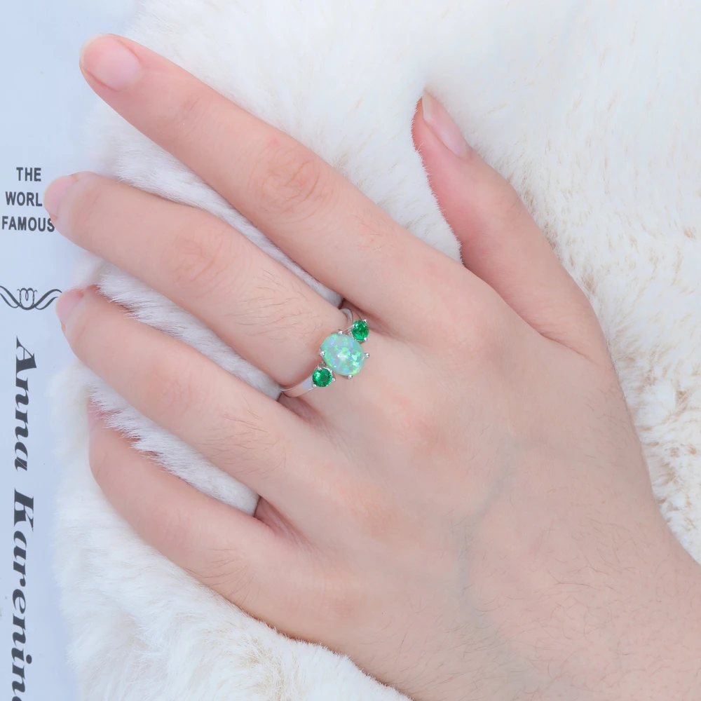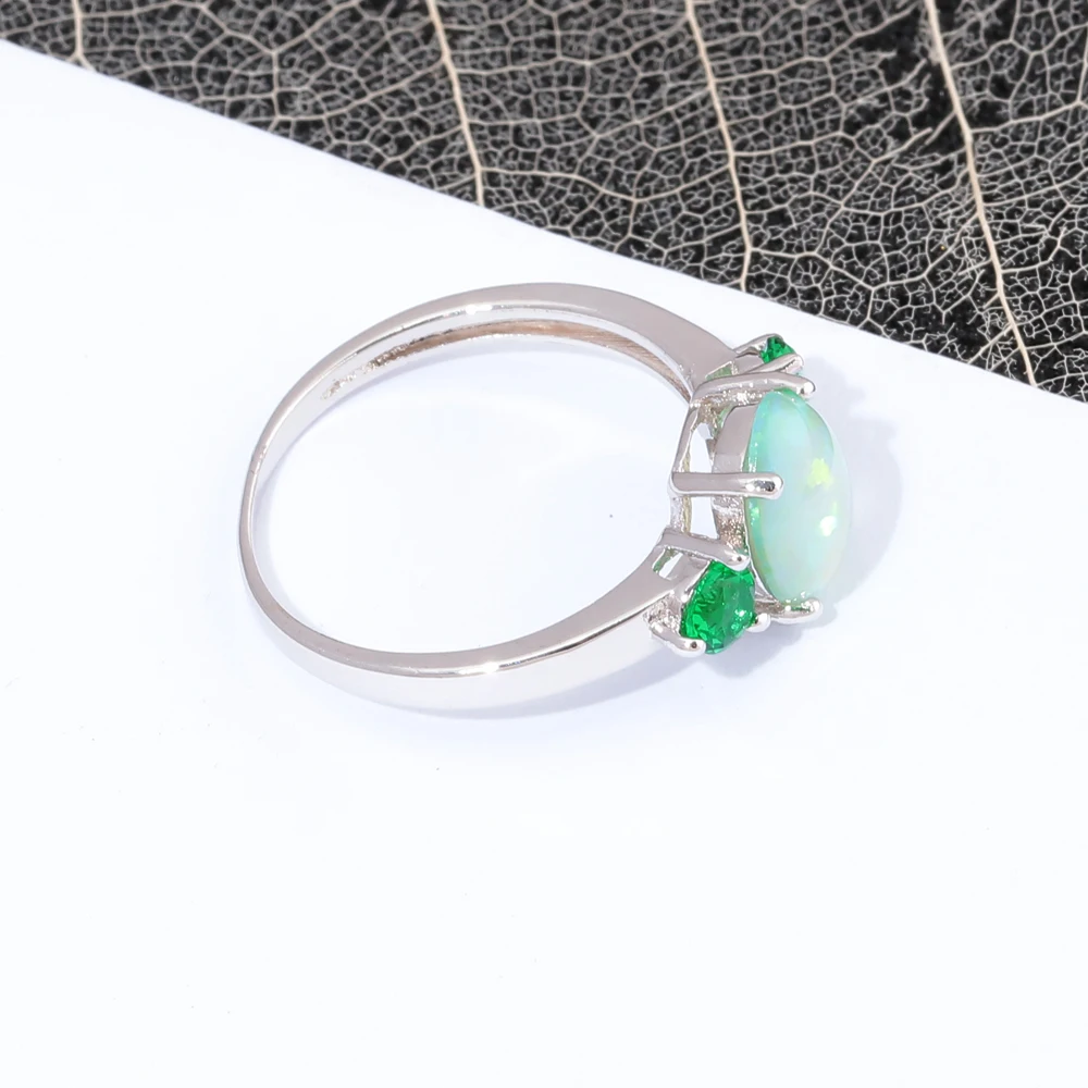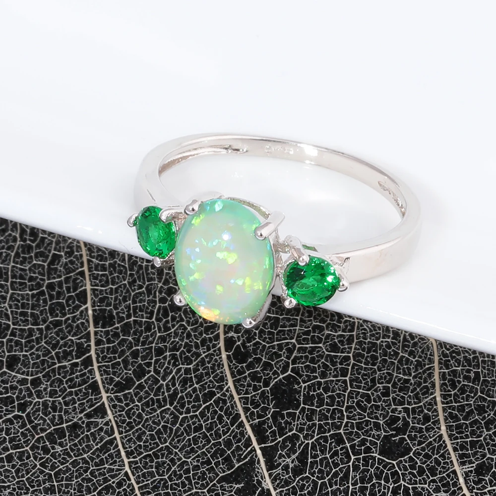 Кольцо женское посеребренное с зеленым опалом, размеры 5-13