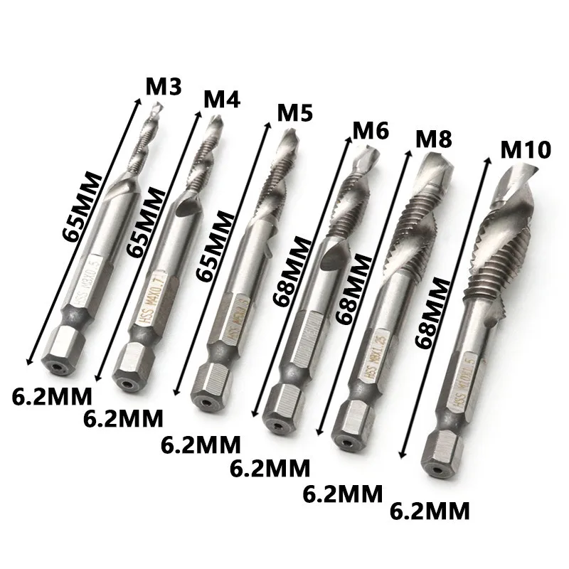 Набор сверл/метчиков/зенковок, метрические, 6 шт.