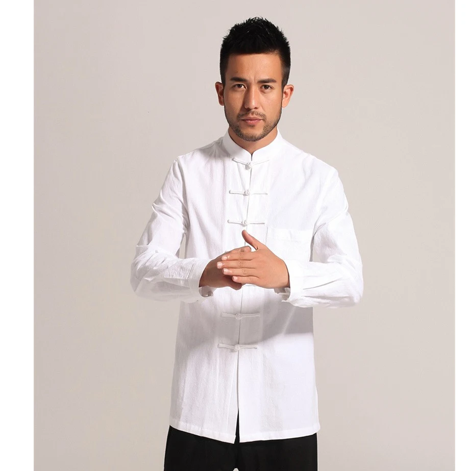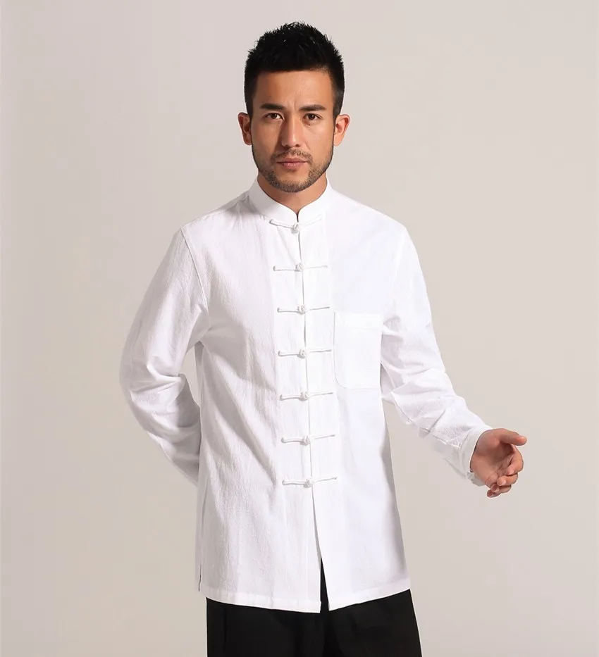 Рубашка мужская хлопковая с длинным рукавом, в китайском стиле