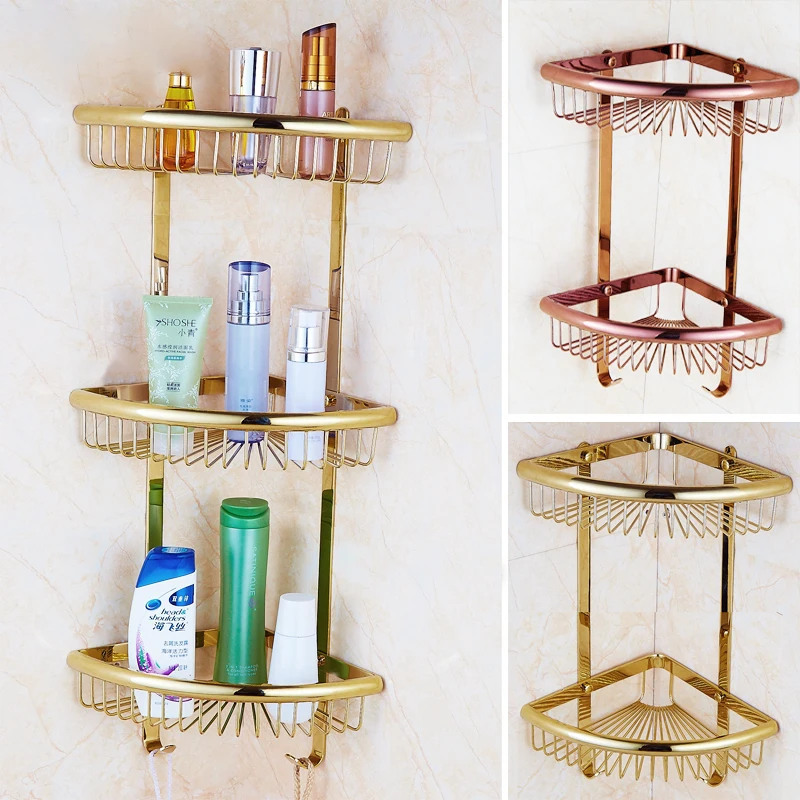Роскошные хрустальные латунные золотые полки для ванной комнаты держатель для шампуня угловая корзина для ванны аксессуары для ванной комнаты оборудование для ванны EL30023