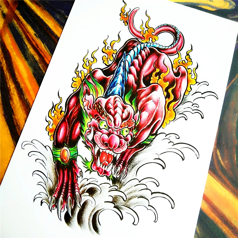 Kylin Magic Beast Временные татуировки боди арт рукава флэш-наклейки татуировки 12*20 см безболезненные хна селфи тату наклейки