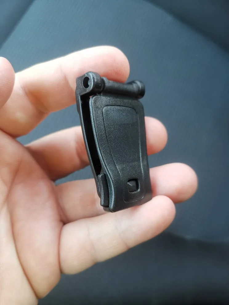 Пряжка-клипса пластиковая. Подходит на капроновый ремень с Али-экспресс шириной 3,5 см в аккурат. Внутри клипса, оттягивается легко. Сам замок на двух кнопках, нажимаем с боков двумя пальцами - клипса открывается и закрывается. В деле не проверял.