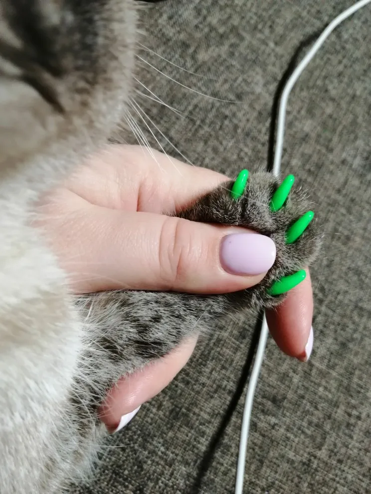 Заказываю второй раз. Очень нужная вещь, если не хочешь портить отношения с котом и не хочешь жить в ободранном доме. Мои коты очень спокойно относятся к ноготкам. Это не вредно и абсолютно не мешает им в жизни. Даже их игры между собой становятся более живыми, так как снижен риск поцарапать друг друга.
