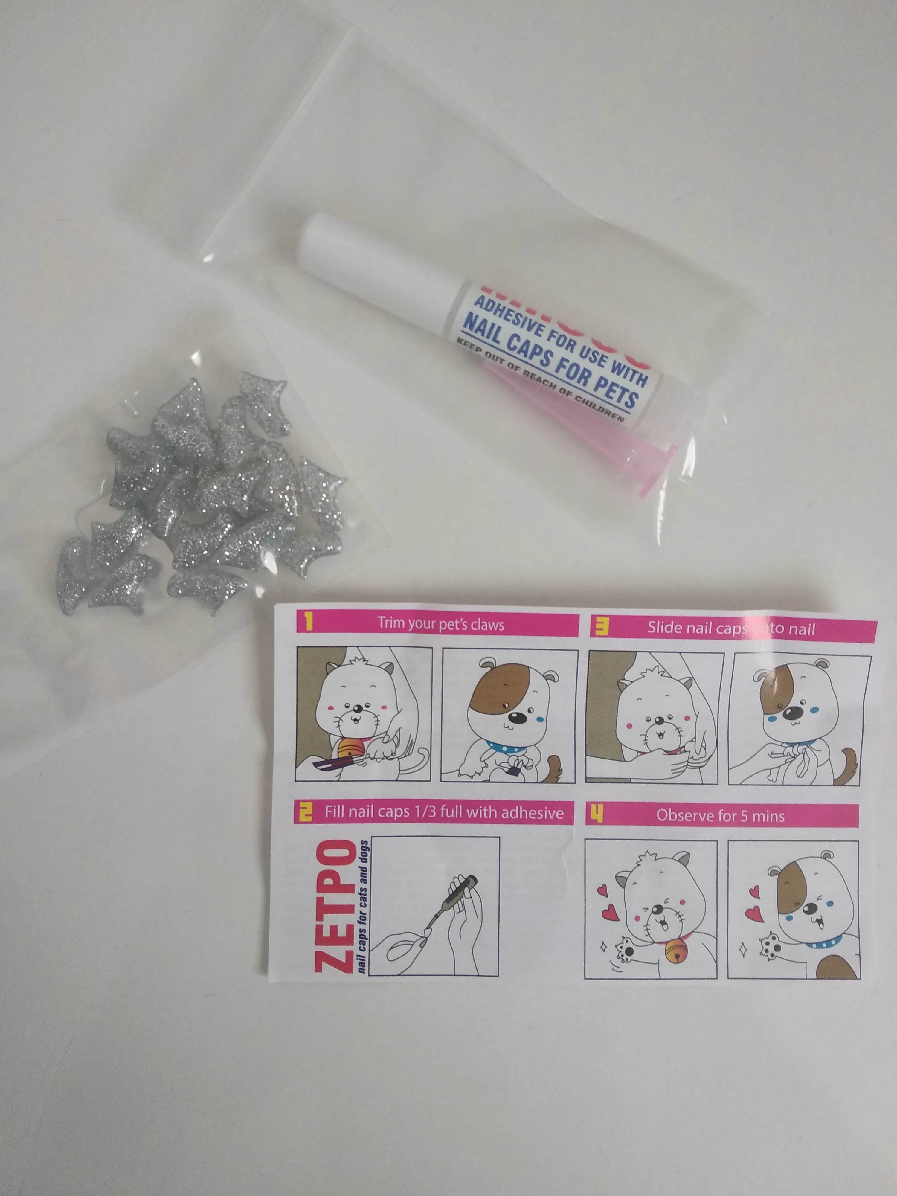 Все отлично по товару. Тюбики с клеем очень удобные. Кот не возмущался, принял колпачки без претензий) Буду заказывать ещё у данного поставщика.