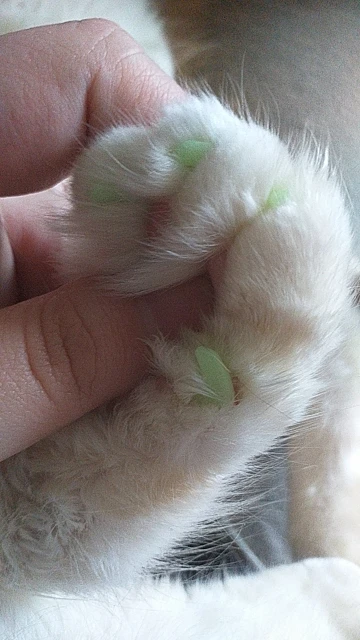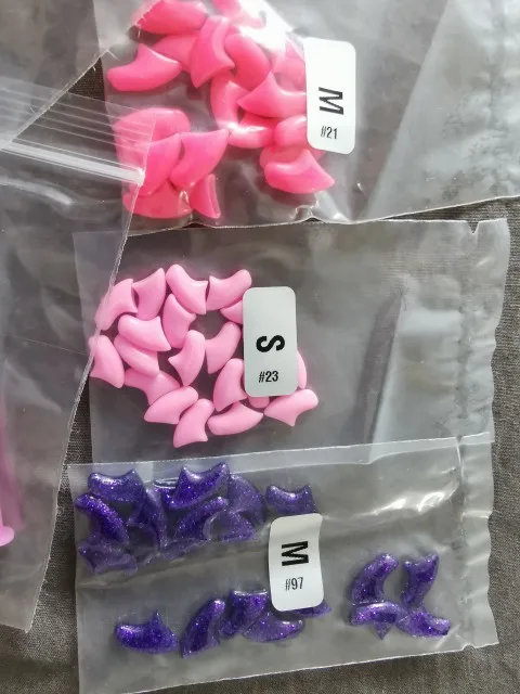 К сожалению, большинство фото говорят о том, что коготочки неправильно наклеены. Их нельзя клеить на всю длину когтя. Когти не смогут уходить внутрь "пальчиков", так как широкие. В лучшем случае-это неудобно кошкам, в худшем-опасно. Мягкие колпачки уходят в кожу, механически повреждая её, а супер клей всасывается. Если вы заказали слишком большой размер, то лишнюю часть легко можно отрезать ножницами. В идеале, если кгти не выпущены, колпочков должно быть видно самый край.