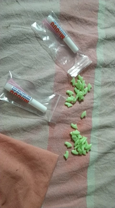 Коготочки просто супер, качество отличное! В комплекте есть клей. Но шли очень долго! Около 2х месяцев((