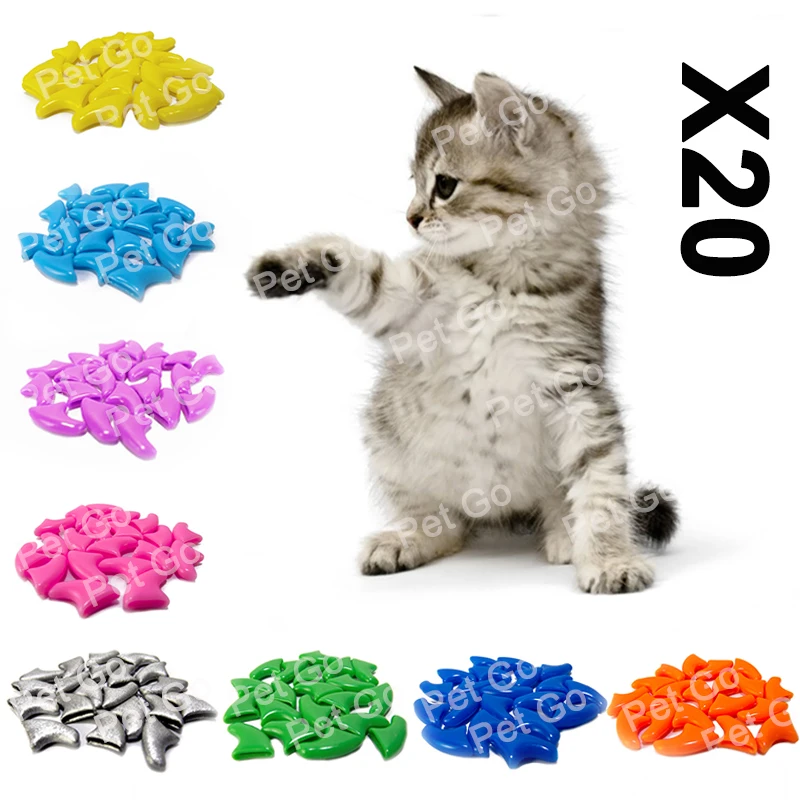 Мягкие колпачки для кошачьих когтей, 20 шт, накладки для кошачьих когтей, лапы, ПЭТ, силиконовый протектор для когтей с бесплатным клеем и аппликатором, размер XS, S, M, L