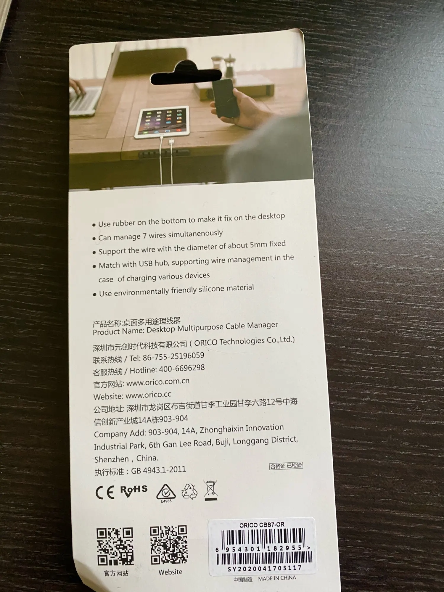 Доставка в течение трех недель с высланным сертификатом, согласно описанию, хороший продукт. Это от бренда Orico, и он очень хорошо работает, у меня есть один на столе, и через год все еще нормально, не снимая, очень хорошее решение для организации кабелей.