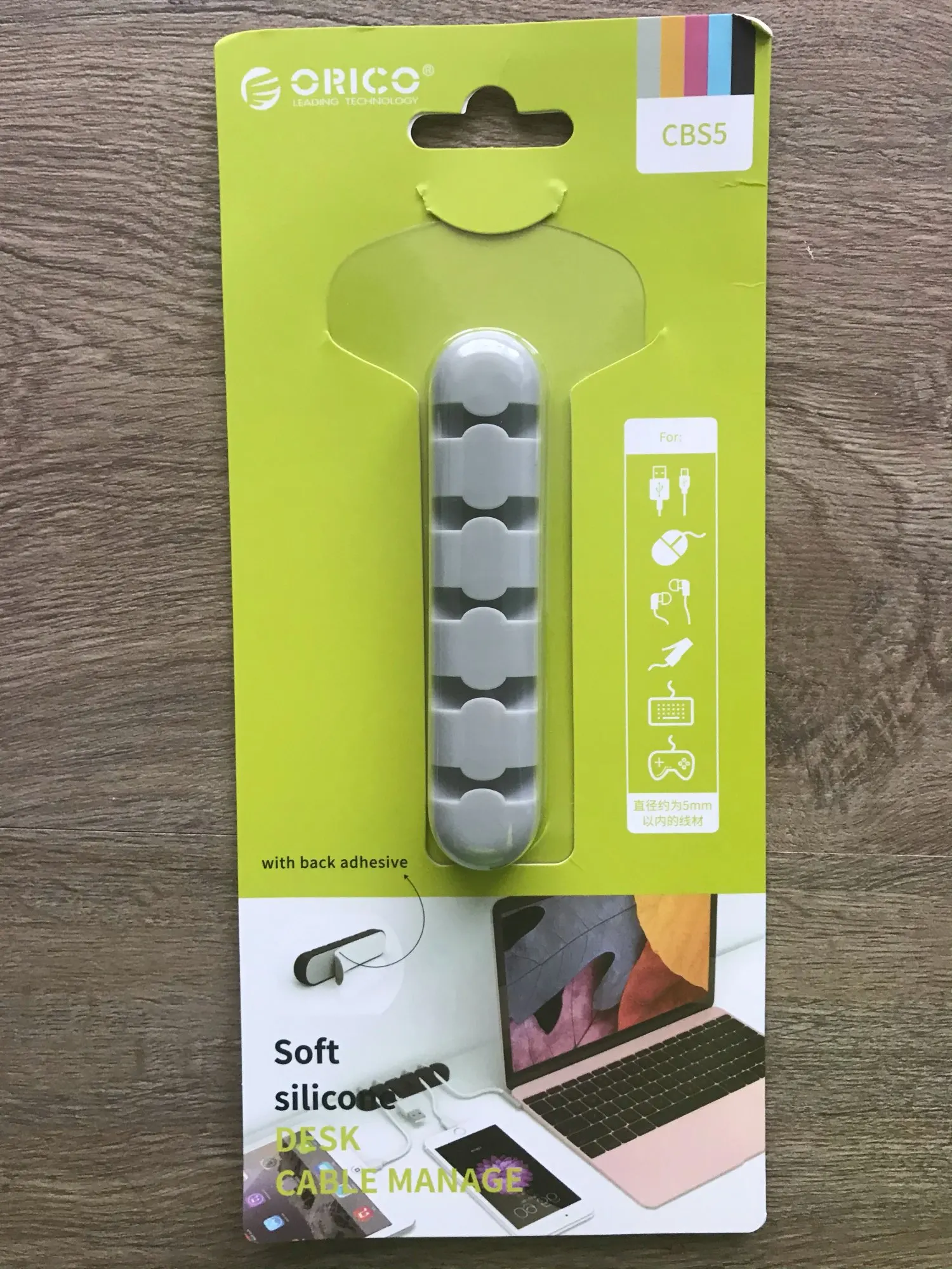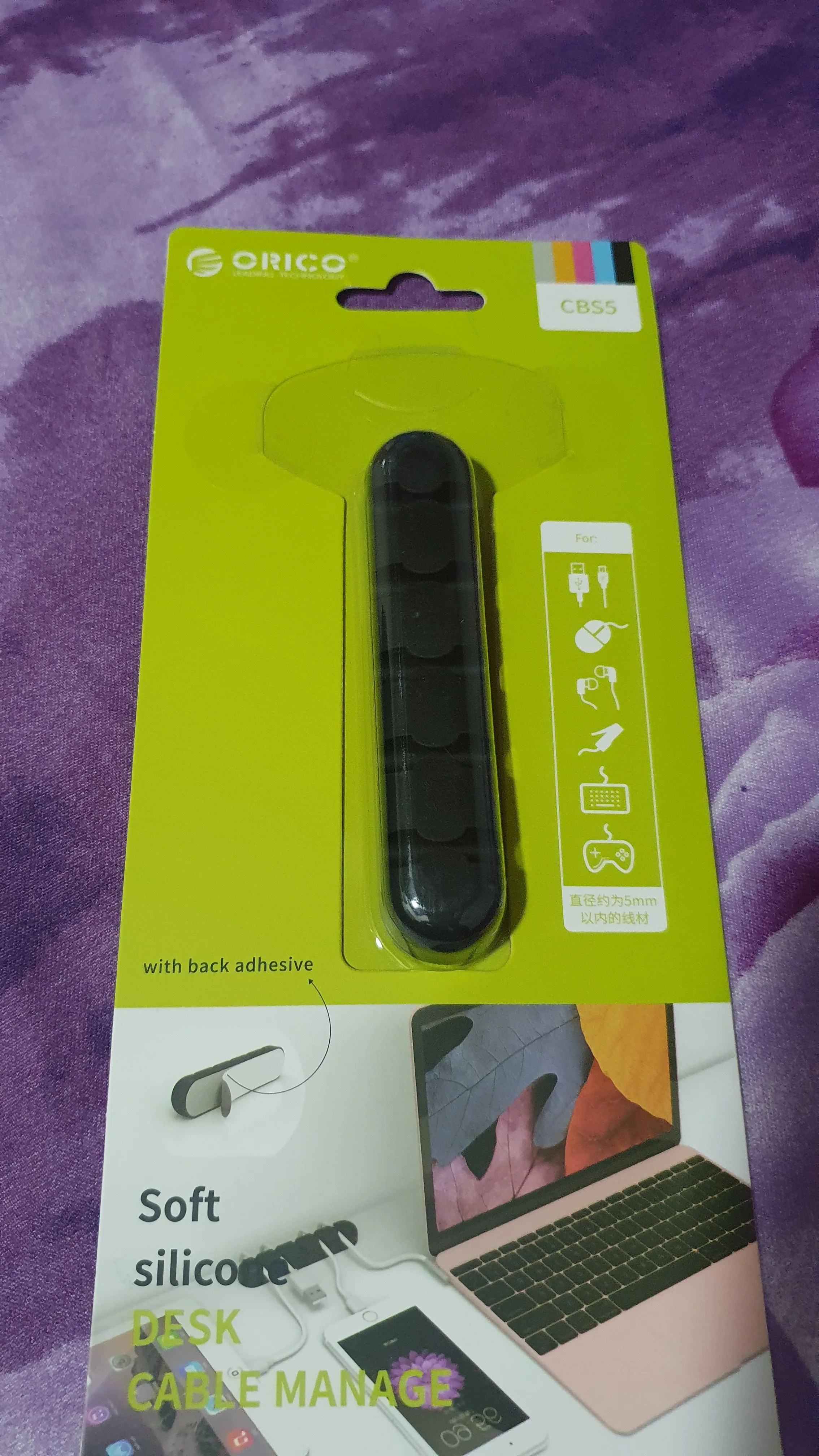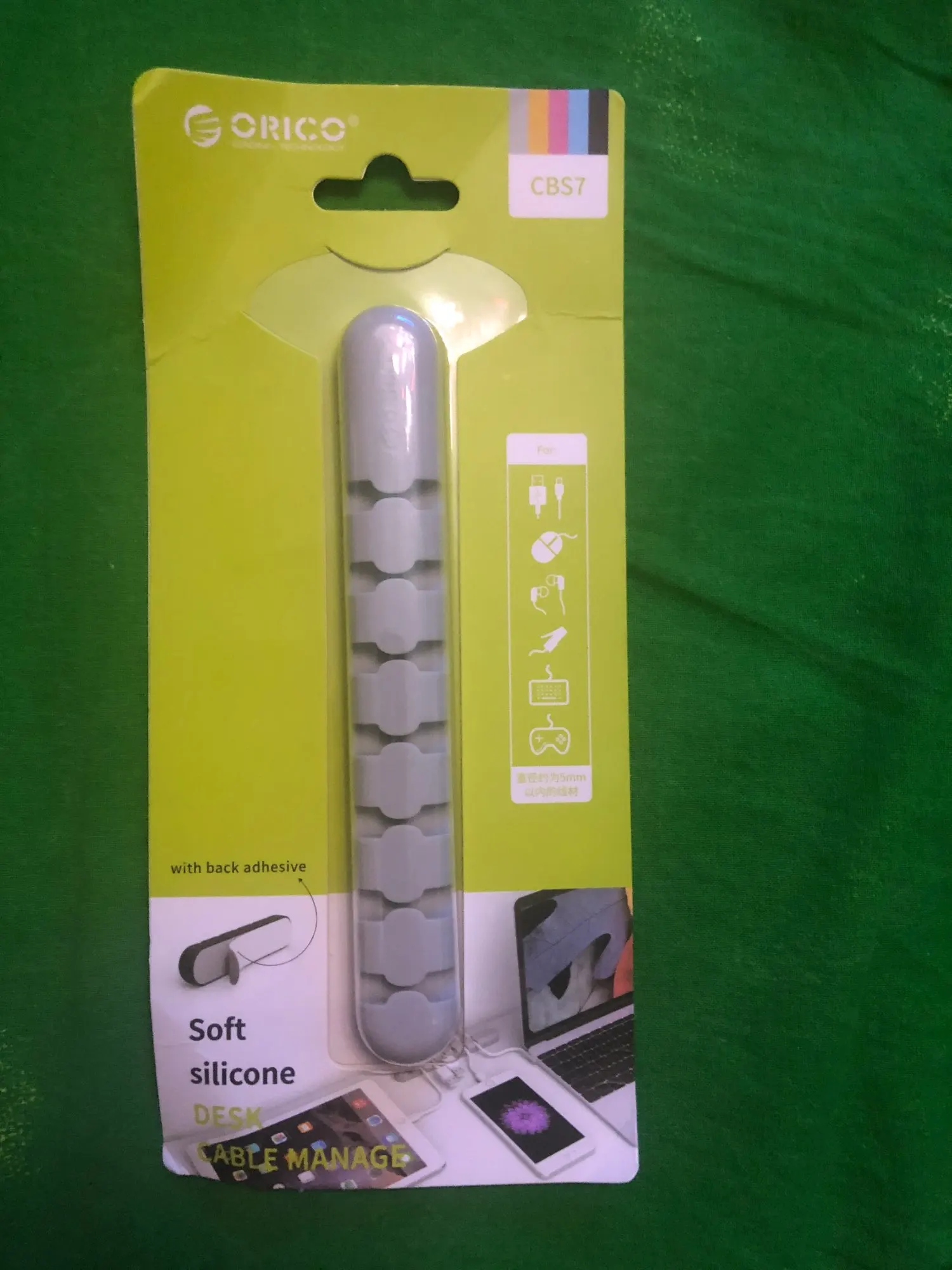 Приятный на ощупь, кабель держит достаточно надёжно. Сзади уже есть клейкая поверхность.