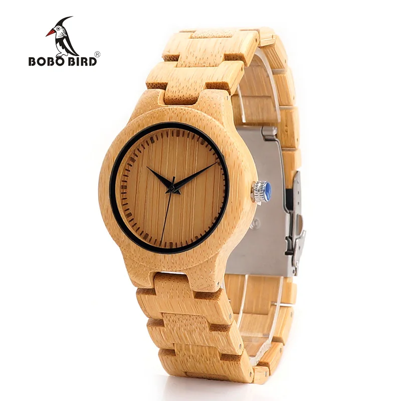 BOBO BIRD Женские бамбуковые деревянные наручные часы с полными деревянными звеньями женские Уникальные повседневные кварцевые часы