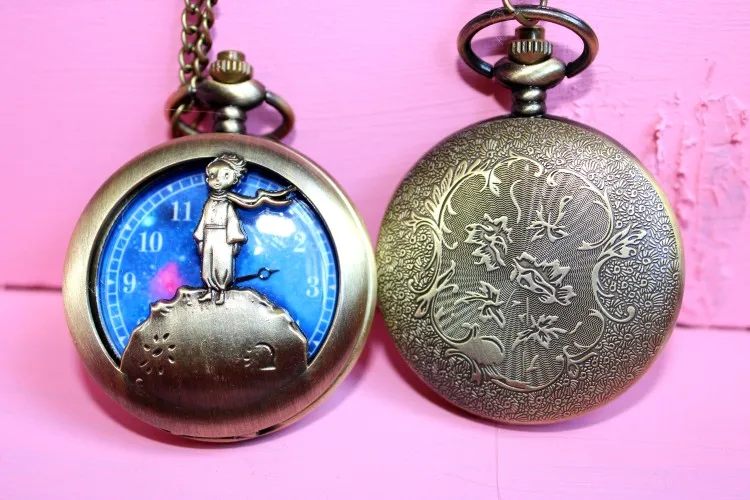 Лидер продаж классические Маленький принц фильм планета синих бронза Винтаж кварцевые карманные брелок часы популярные подарки для Обувь для мальчиков Обувь для девочек Дети карманные часы детские карманные-часы