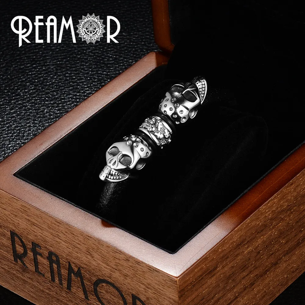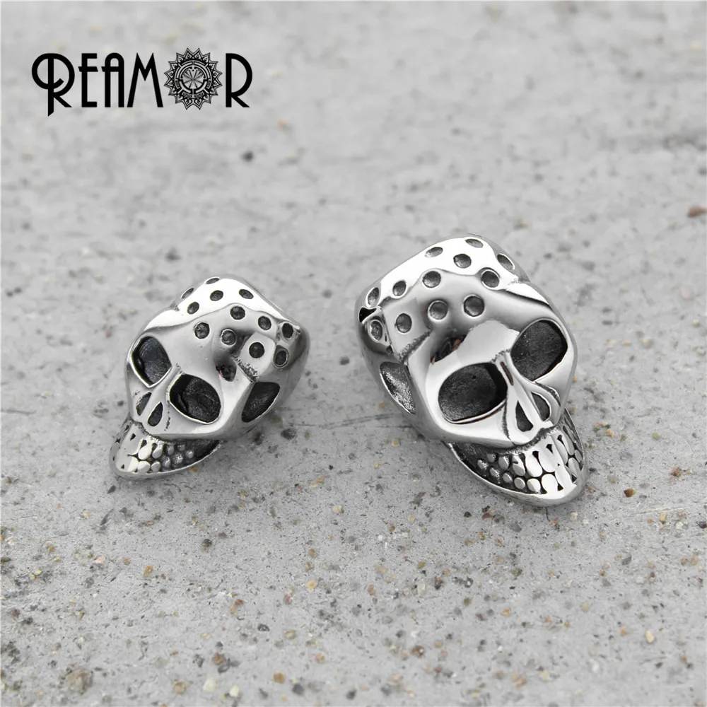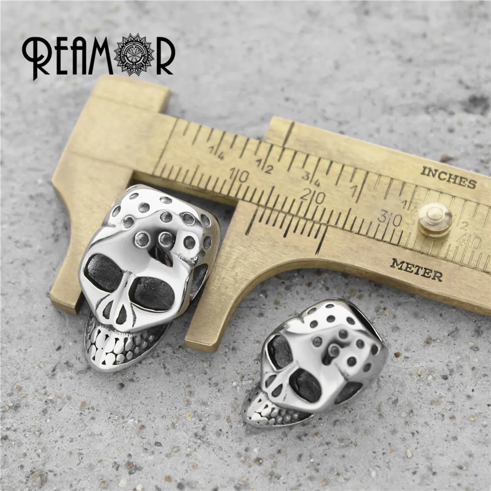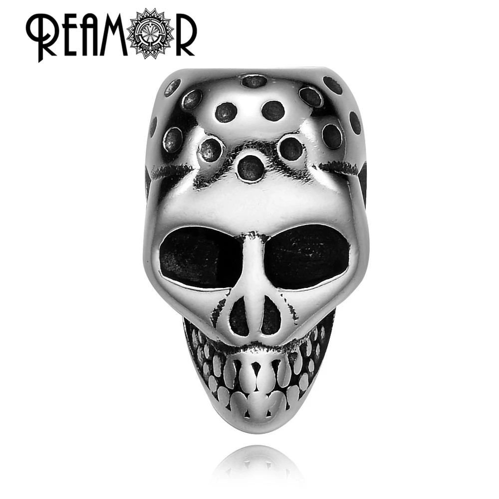 Бусины в стиле панк REAMOR с черепом из нержавеющей стали 316l, бусины в европейском стиле с большим отверстием 8 мм, бусины-подвески сделай сам для изготовления мужских браслетов, ювелирных изделий