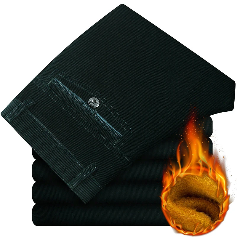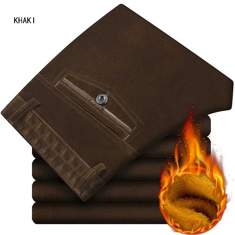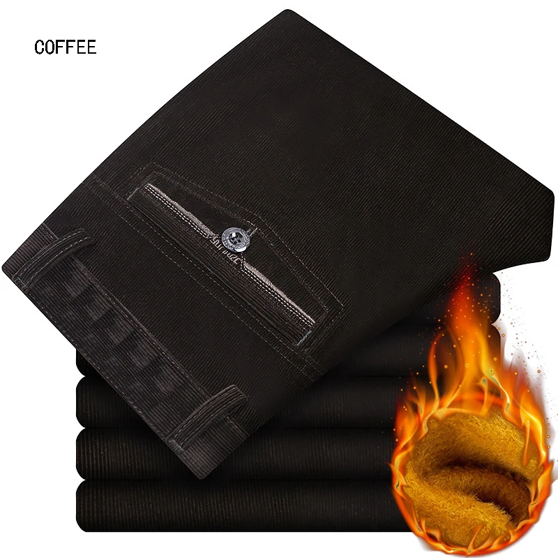 Мужские вельветовые брюки с золотым флисом для мужчин среднего возраста, зимние плотные бархатные теплые мужские вельветовые брюки, свободные прямые брюки, размер 42