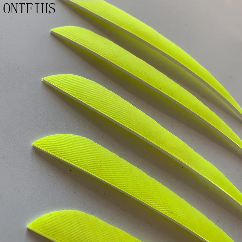 Флуоресцентные желтые стрелы ONTFIHS 3, 4, 5 дюймов, 50 шт., перо индейки, стрелы для стрельбы из лука, аксессуары Оперение FT57