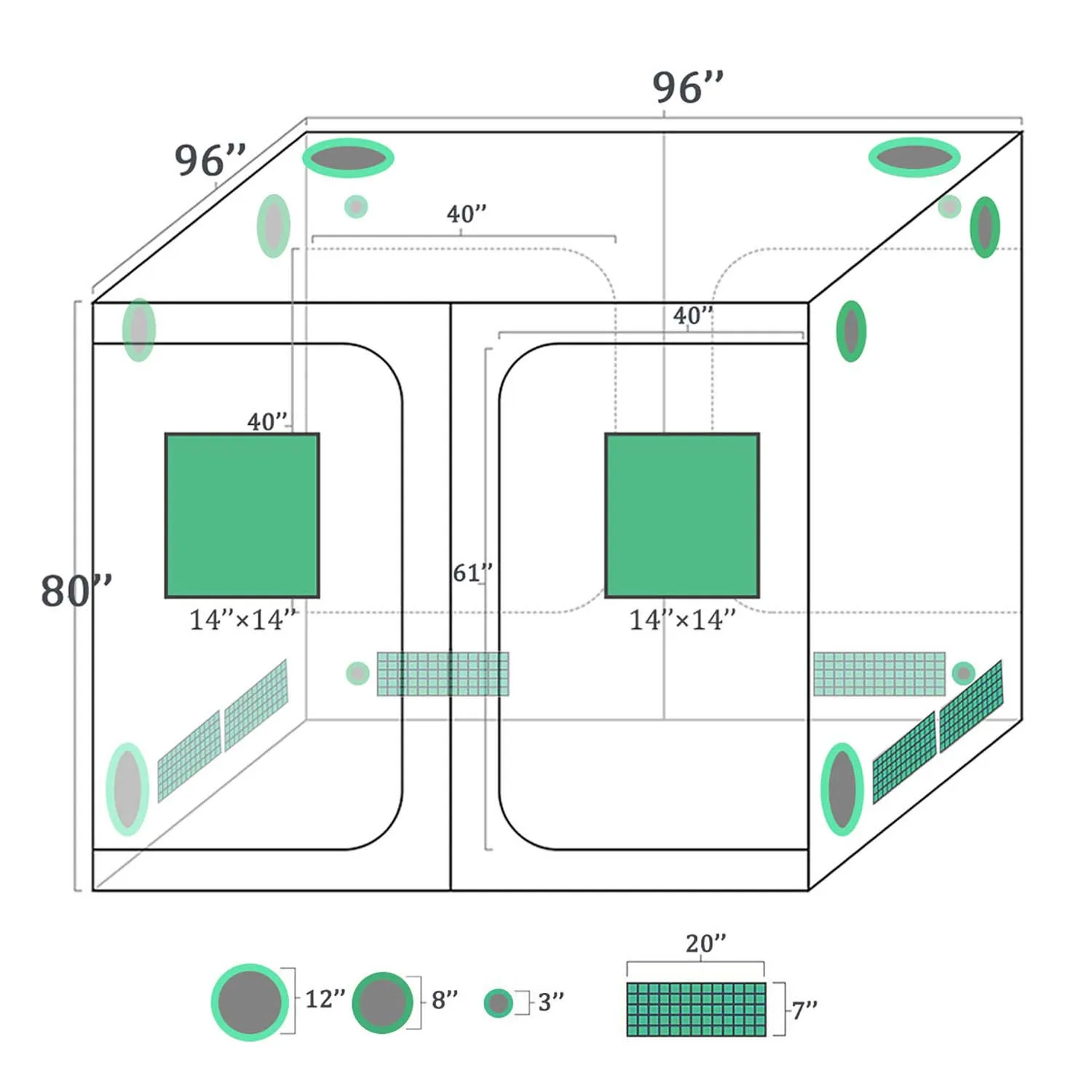 Размер: 96 "x 96" x 80 "= 8" x 8 "x 6,5" = 240x240x200cmБренд: Mars HydroВнутренний материал: 100% высокоотражающий Майлар-сверхмощный, тугой светильникВнешний материал: 1680D ткань Оксфорд-сверхмощный, легкийМатериал соединителя: прочный металлМатериал оправы: металлическая оправа с покрытием белой краскойОбщая емкость: 150 кг/330 фунтовРазмер вентиляционного отверстия (Количество/диаметр): 4 × 3 '', 4 × 8'', 4 × 12''Микросетчатое окно (количество * Д/Ш): 6*7 ''× 20''Вес нетто: 37 кг/82lbsДверь: 2 передних двери, 2 полулунные двери на молнииПоднос для пола: съемный поднос для пола для легкой очисткиПодвесная планка: оснащена 8 подвесными планками для безопасного подвешиванияНесколько вентиляционных отверстий: несколько вентиляционных отверстий с регулируемыми нейлоновыми ремешкамиМикросетчатое окно: прямоугольное окно с сеткой для предотвращения насекомыхПрименение: гидропоника, почвы на основе выращивания, теплицы и т. Д.Характеристики: ПВХ бесплатно. Нетоксичный. Никакого вреда для растений