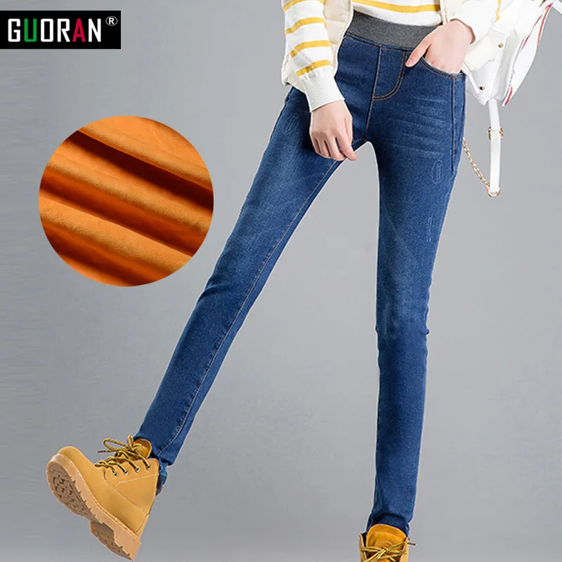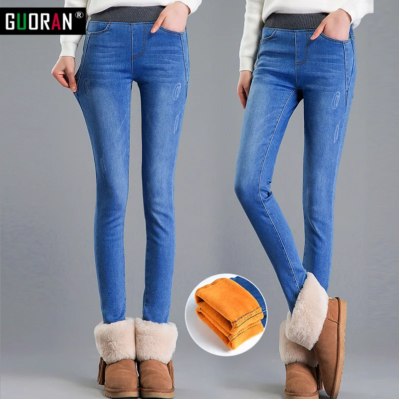Узкие джинсы, женские джинсовые брюки, повседневные брюки, плотные теплые облегающие брюки-карандаш, бархатные эластичные джинсы с высокой талией, женские зимние