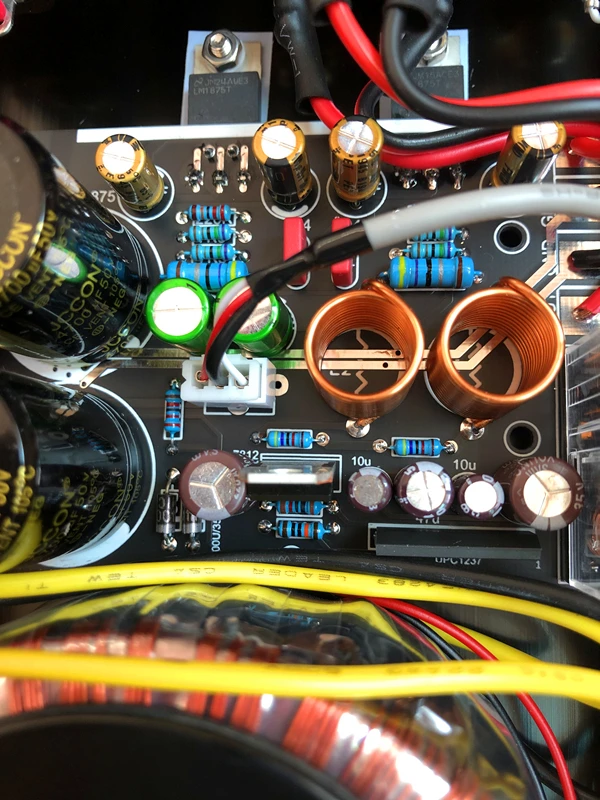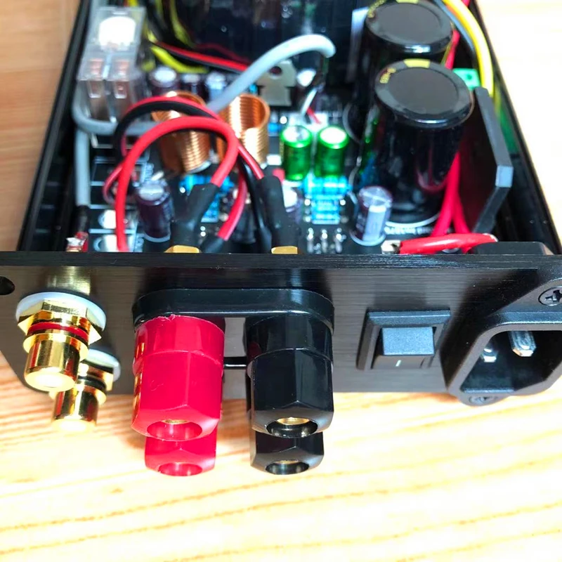 Вся машина использует классическую цепь, тщательно отобранные компоненты, новый оригинальный LM1875IC, Omron реле, установите upc1237 защиту динамика, 100 Вт трансформатор из чистой меди, медные выходные клеммы, алюминиевое шасси. Двухсторонняя Золотая печатная плата погружения