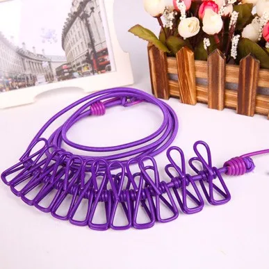 Портативная эластичная веревка для белья вешалка для сушки одежды, 12 зажимов