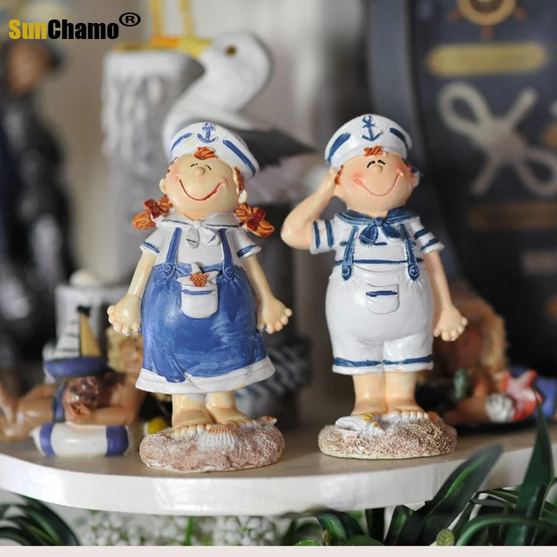 Средиземноморская стильные куклы фигурка моряка мальчик девочка украшения ремесла украшения дома аксессуары Оптовая продажа MA12024AB