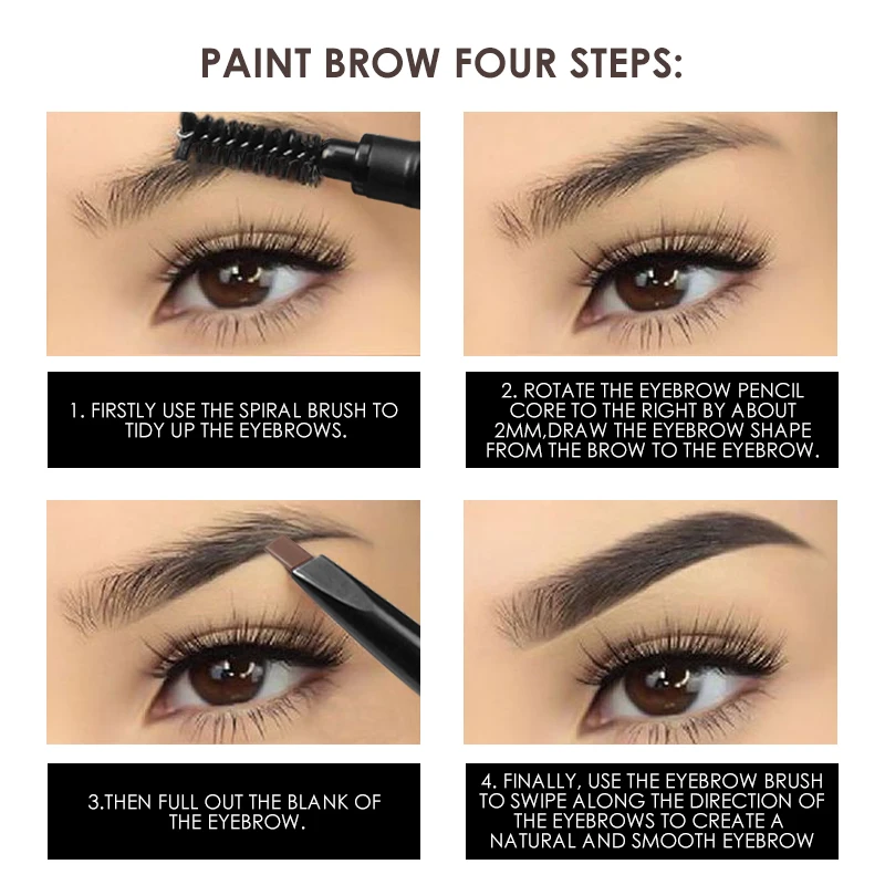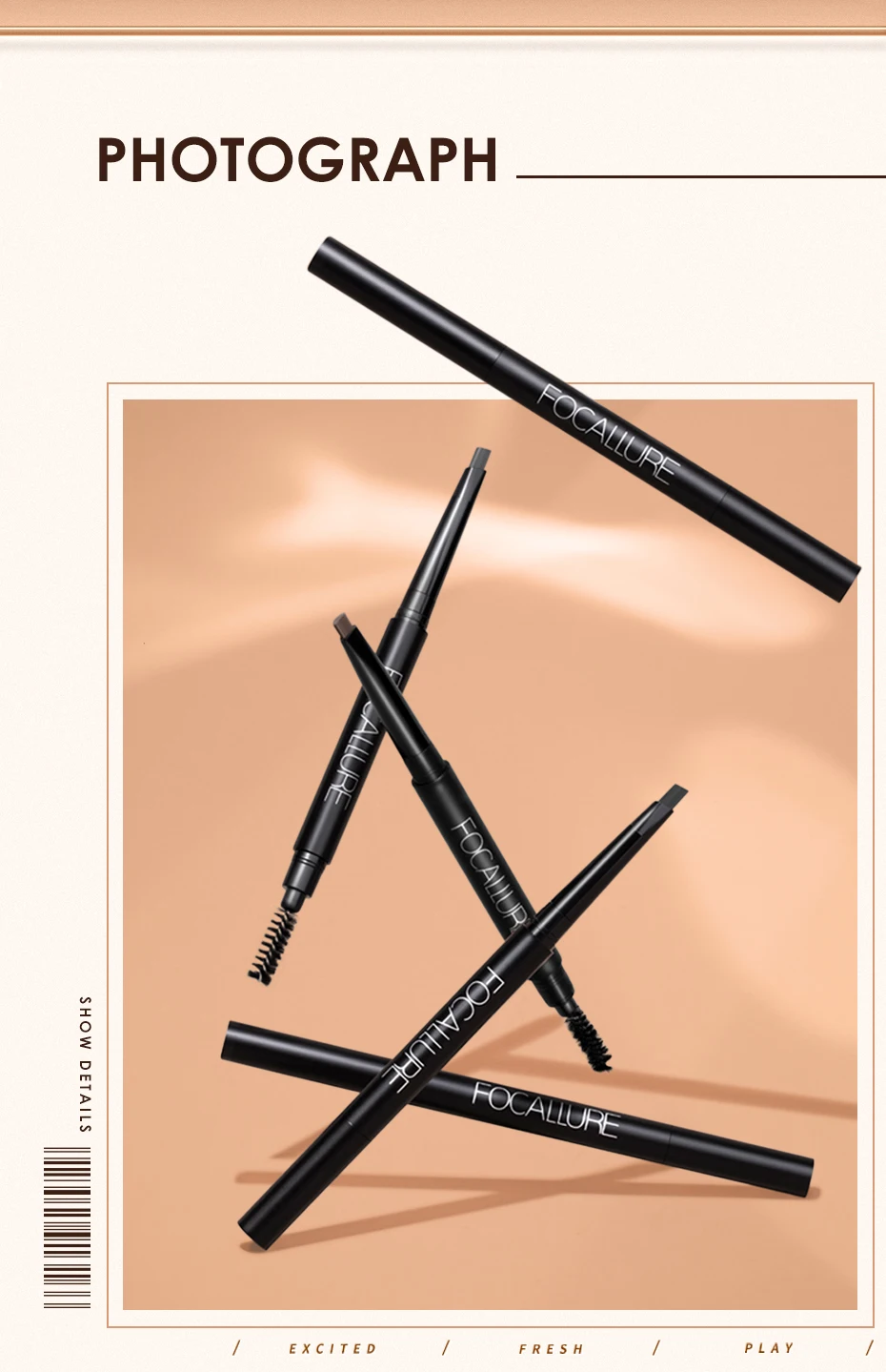 Карандаш для бровей FOCALLURE, 3 цвета, мягкий гладкий автоматический водонепроницаемый натуральный карандаш для бровей с кисточкой, инструменты для макияжа