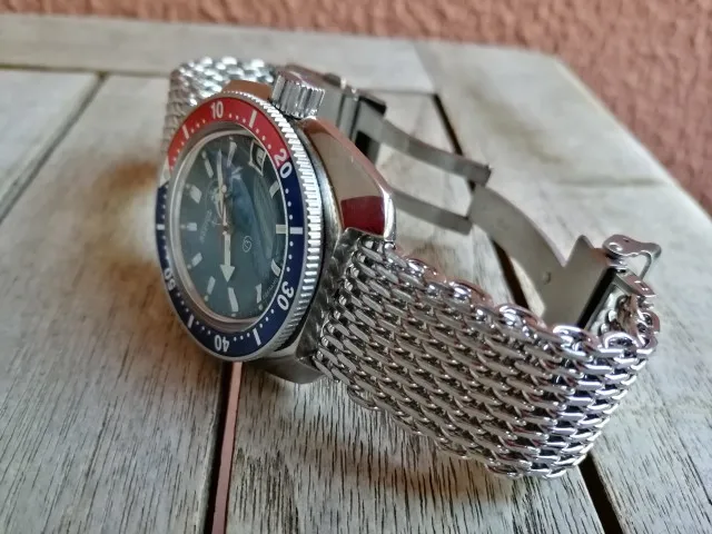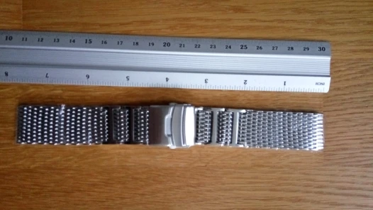 Товары доставляются в хорошем порядке, Акулья беспорядок на ощупь приятно на ощупь, но при более тщательной проверке, есть острые края, где цепь была срезана, Я могу только сказать, что именно поэтому ремешок для часов такой дешевый. Я узнаю, как это будет, когда позже после некоторого ношения. Все еще за цену, действительно хорошая