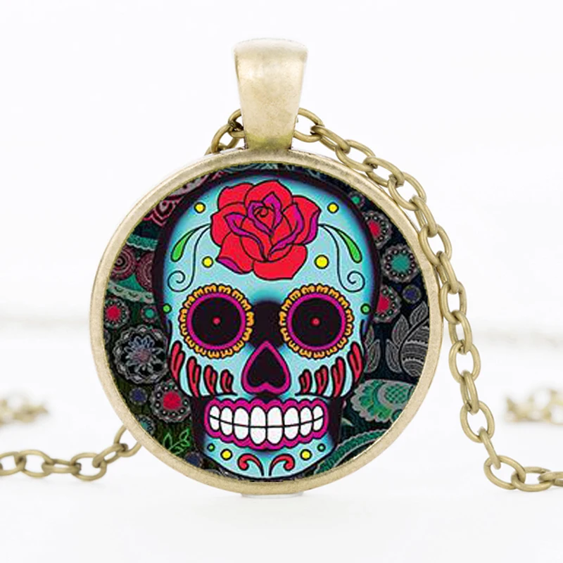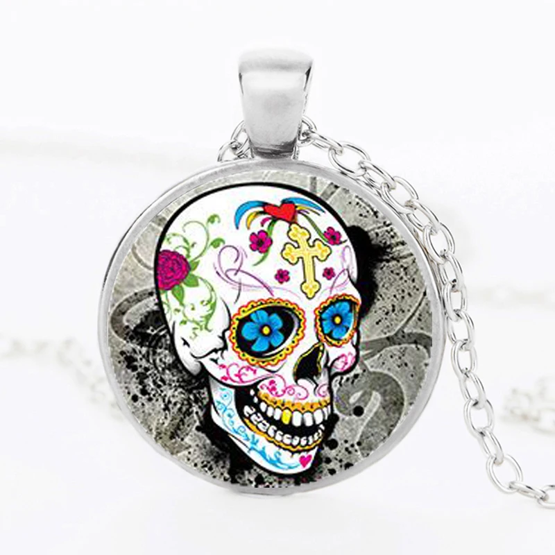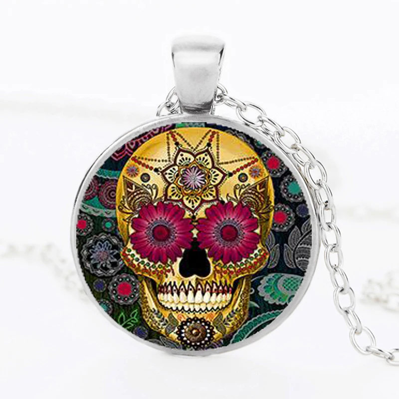 Классическое мексиканское ожерелье SUTEYI с черепом из сахара, стеклянная подвеска со скелетом, серебряная цепочка, Длинные ожерелья для мужчин, ювелирные изделия