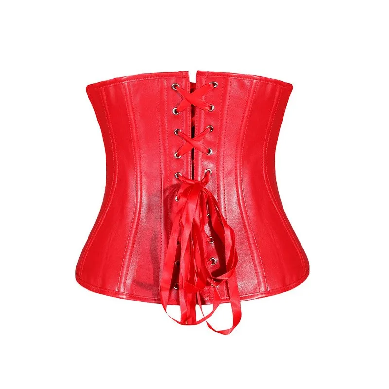 Женский корсет из искусственной кожи, черный и красный корсет