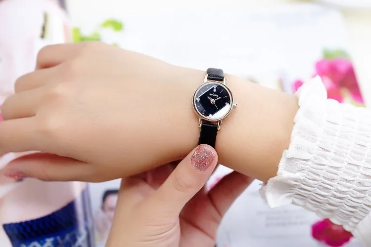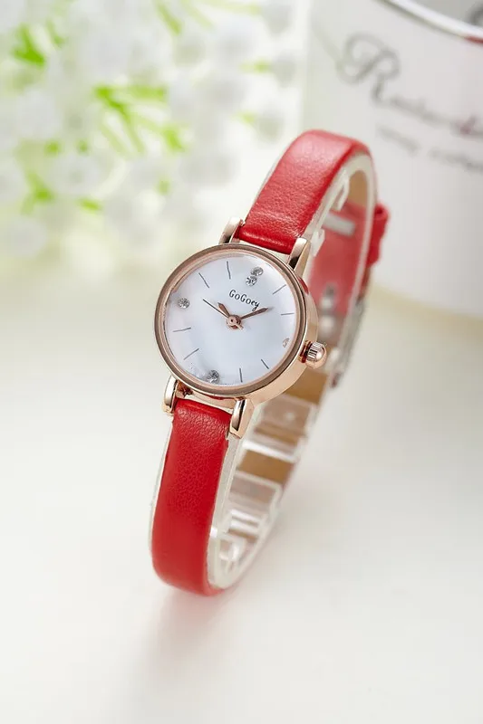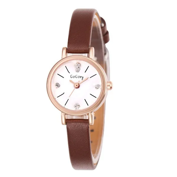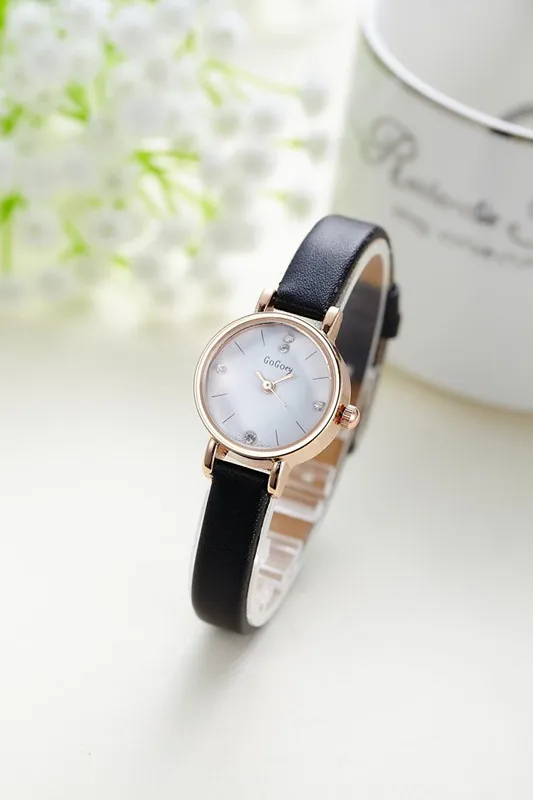 Лидер продаж Gogoey бренд тонким кожаным ремешком женские Стразы платье кварцевые наручные часы, наручные часы с механизмом, Mujer GO053