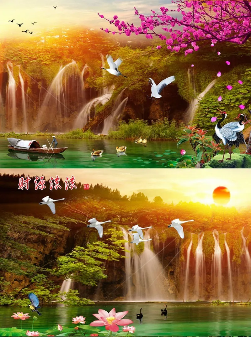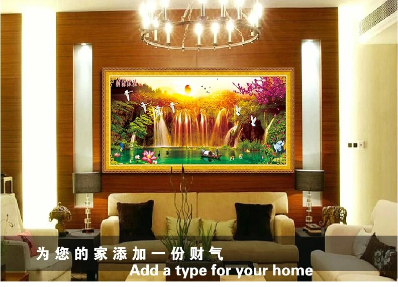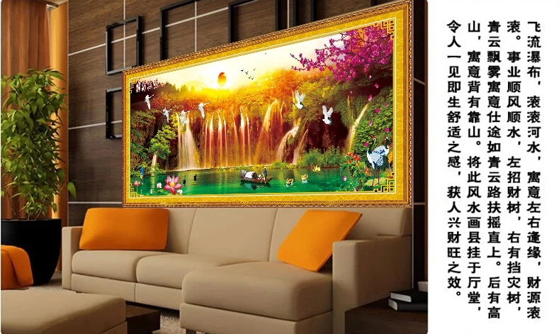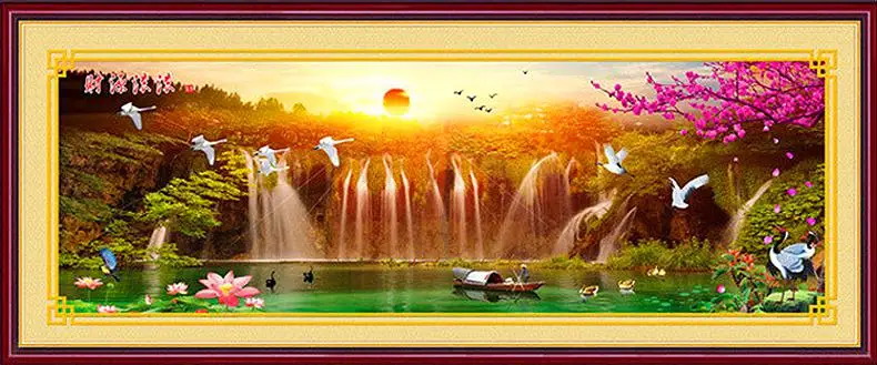 Набор для вышивки крестом QIUSI, закат, птицы, пейзаж, картина для вышивки крестом, озеро с водопадом