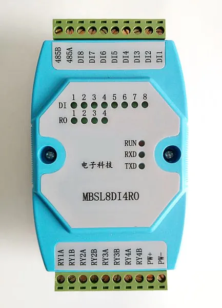 Модуль MBSL8DI4RO представляет собой 8-канальный цифровой изолированный вход, 4-Канальный Релейный изолированный выход, выход через интерфейс RS485. Модуль использует стандартную связь Modbus RTU, адаптирует множество видов программного обеспечения, PLC, DCS и так далее. Блок питания модуля, электрические сигналы связи RS485 изолированы друг от друга, эффективно подавляют последовательный режим и помехи в общем режиме.