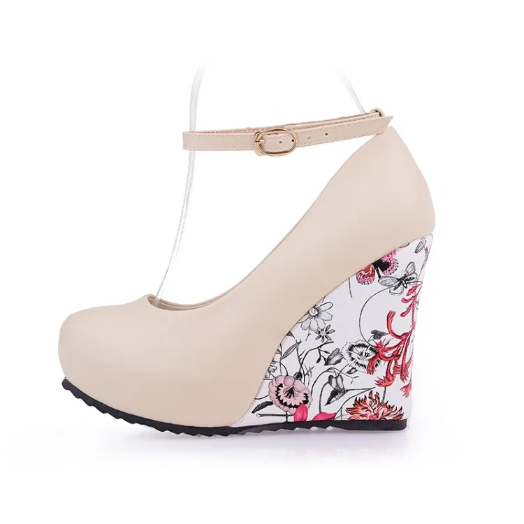 33-43! Модные летние повседневные туфли-лодочки на клиновидной платформе с цветочным узором и ремешком на лодыжке с заклепками сезона 2016