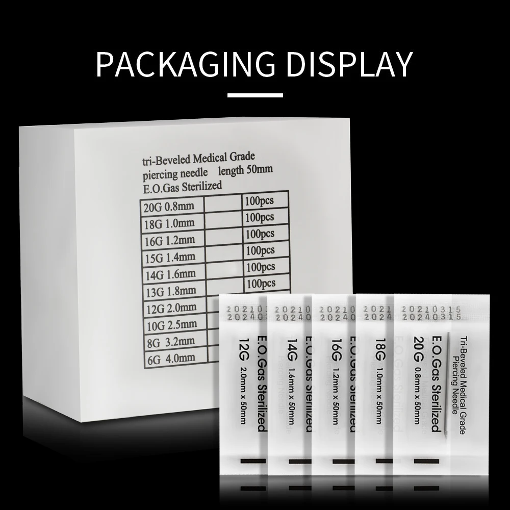 100 шт 16 г одноразовые стерильные иглы для пирсинга тела 16 г с коробкой для ушей носа пупка соски Бесплатная доставка