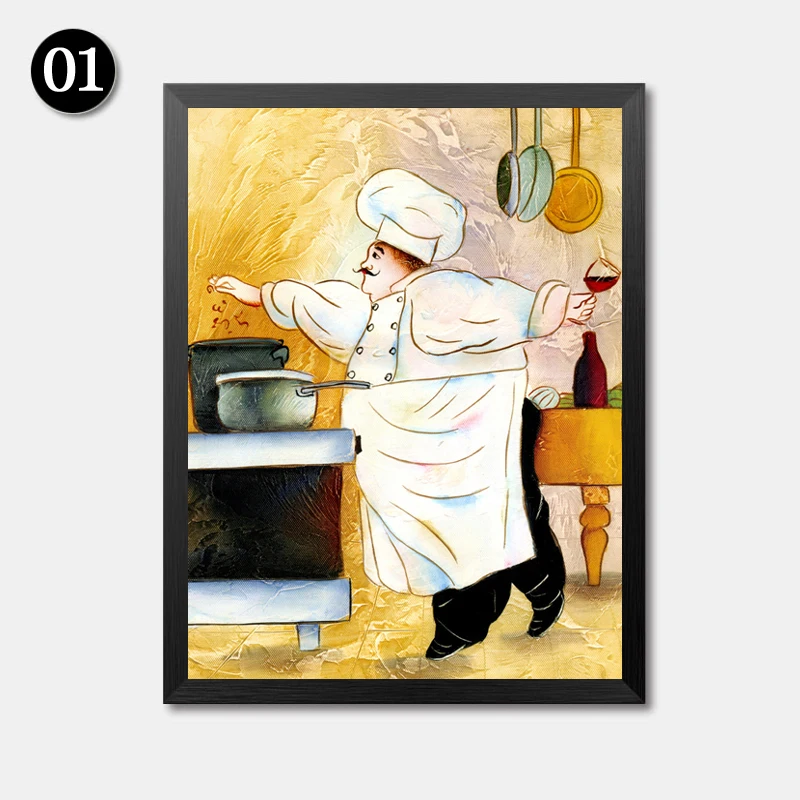 Настенная картина шеф-повара, ресторана, Картина на холсте, персональная картина маслом, мультяшная хлебобулочная кухня, плакат, картина HD0169