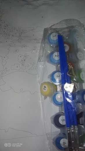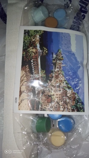 Доставка быстрая. Трек отслеживался. Описанию соответствует. Упаковпно хорошо, всё пришло без повреждений. В комплекте холст, краски, и образец на небольшом листочке, цветной.