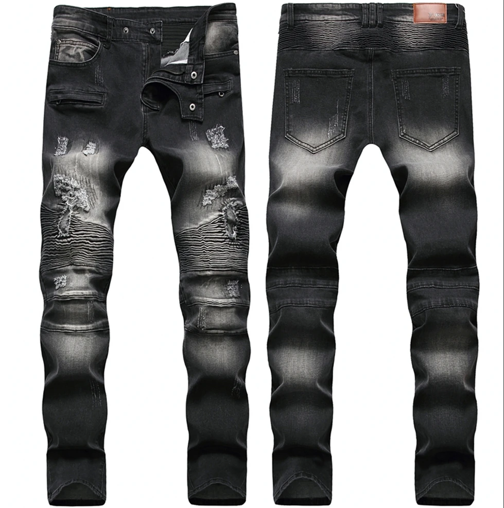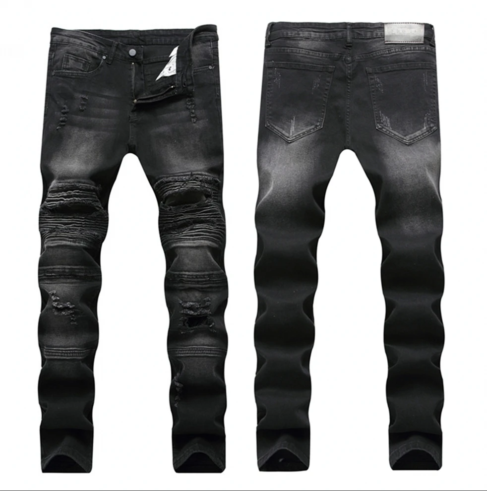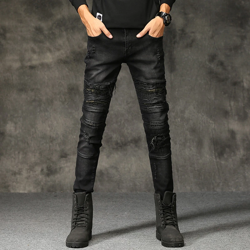 Джинсы мужские, рваные, байкерские, зауженные, в стиле пэчворк, 2020
