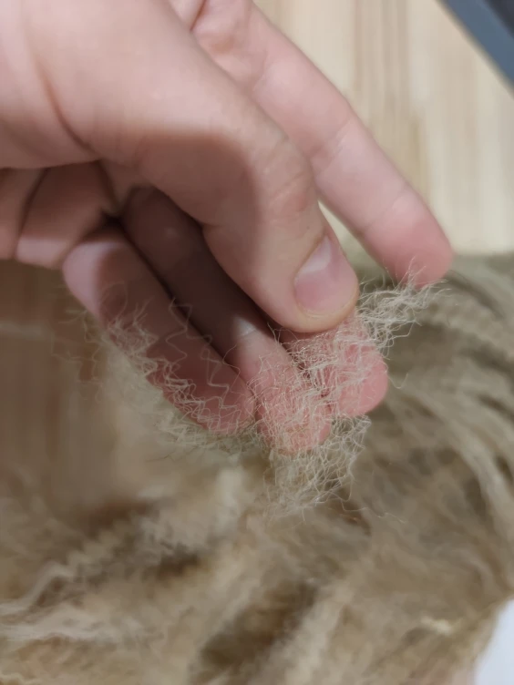 Волосы как пакля - жёсткие и неприятные на ощупь. Для текстильной куклы не подойдут.