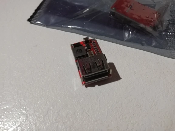 Пришло за 25 дней в сборной бандероли. Работает, но при 2А напряжение проседает до 4,82V и нагревается незначительно. Буду ставить в машину как блоки зарядки.