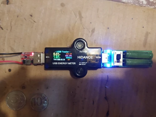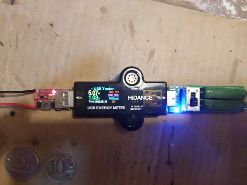 получил этот модуль. доставка около 40-50 дней. всё собрано хорошо качественно без люфтов. утечки в режиме ожидания практически нет. пробовал запитывать от трех устройств: первое- блок питания ноутбука 19 вольт на выходе из модуля получил примерно 2 ампера( см скриншот там не учитывается что еще телефон потребляет 300-400 мАч) второе устройство -блок питания 12В 1 ампер на выходе из модуля в получил ~1 ампер 5 Вольт. Третьим устройством питания был блок 6 вольт 2 ампера. на выходе из модуля получил примерно 1,2 Ампера 5в. Покупал для мотоцикла, но еще не ставил. думаю 1-1.3 ампера давать будет от автомобильного или мото АКБ в общем рекомендую пс под сильным током 1.5 - 2 ампера заметно греется. но палец не обжигает. при 1ампере слегка теплый. рекомендую в общем