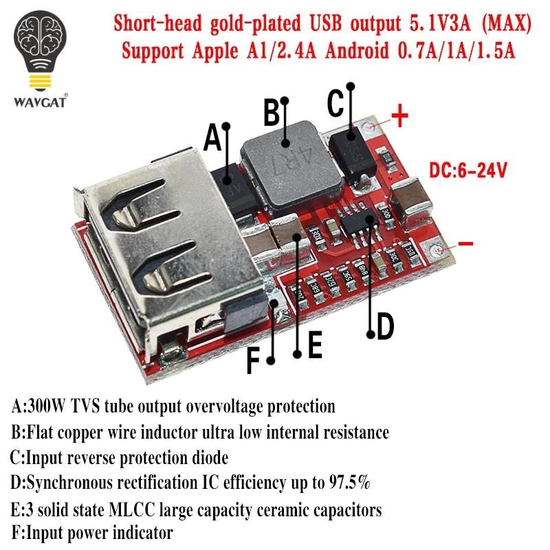 Понижающий модуль USB 6-24 в 24 в 12 В в 5 В