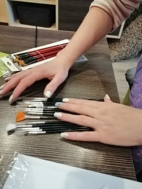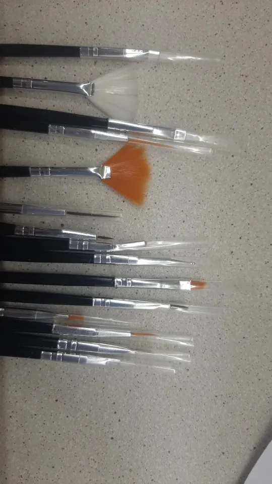 Товар полностью соответствует описанию, пришел в пузырчатом конверте. Кисти небольшие, разной длины, на вид - хорошее качество. Ручка крепкая, из пластика. Ворс мягкий, но упругий, защищены пластиковыми трубочками. Рабочая часть одной веерной кисти немного кривовата, несимметрична. Кисти покупала НЕ для маникюра, а для живописи (для выписывания мелких деталей). В данном наборе очень понравились лайнеры: от миниатюрного - до среднего. В деле еще не пробовала. Товар и продавца рекомендую! Большое спасибо!