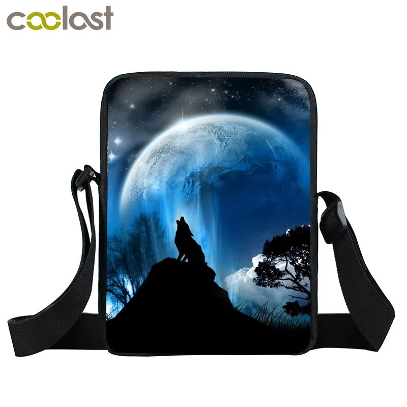 Крутая маленькая сумка через плечо с принтом Луны и воющего волка, ...