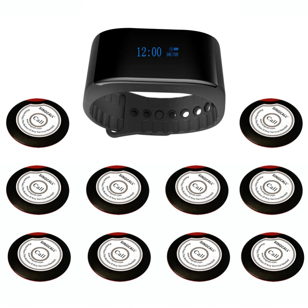 SINGCALL Беспроводная система вызова официантов кафе, церковная система пейджера 1 новый браслет часы пейджер плюс 10 кнопки вызова