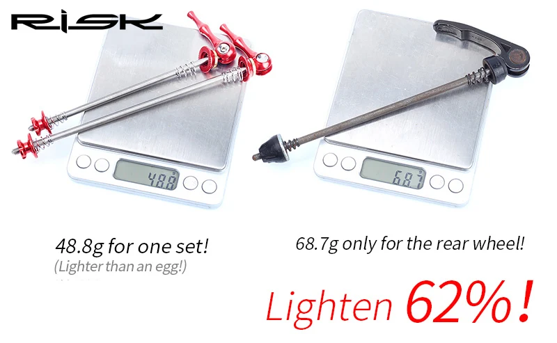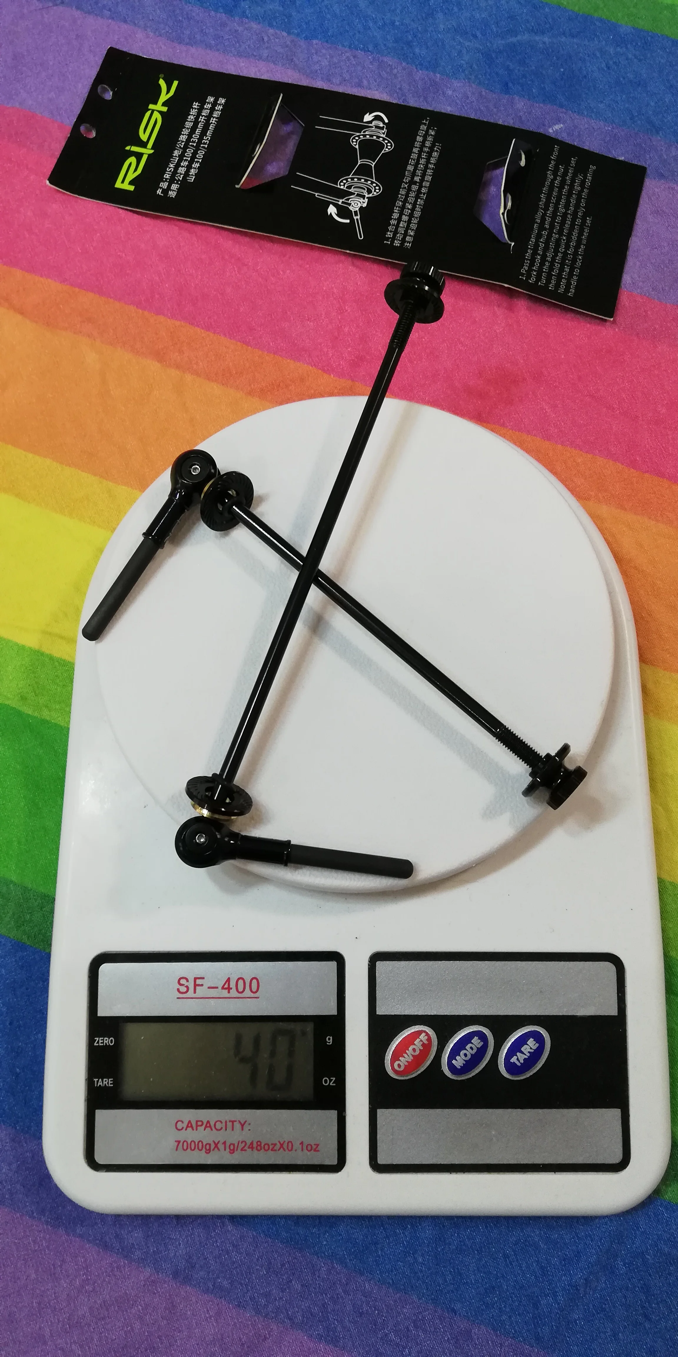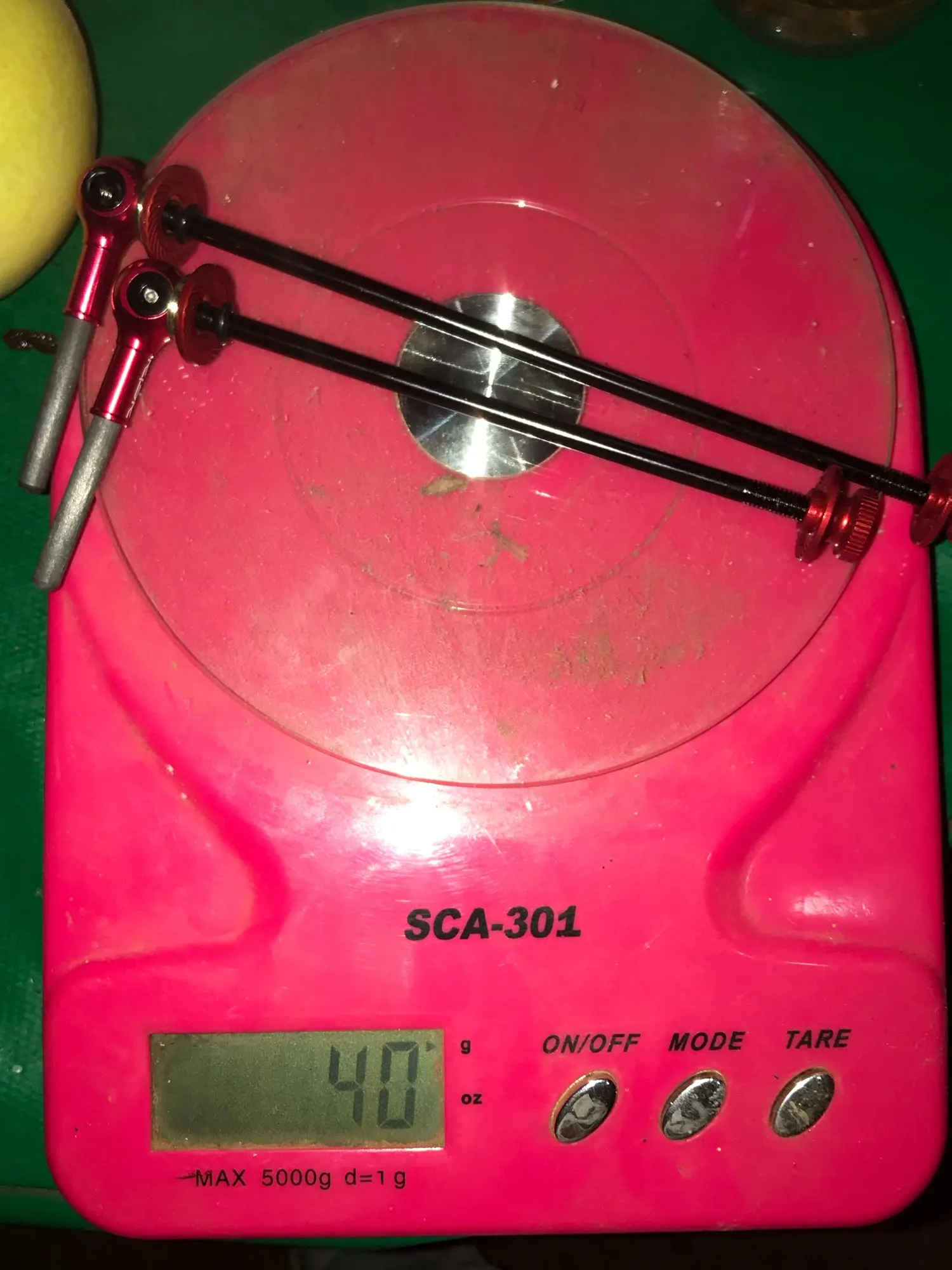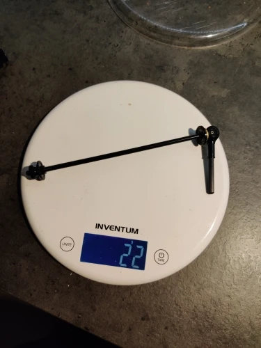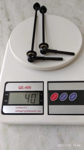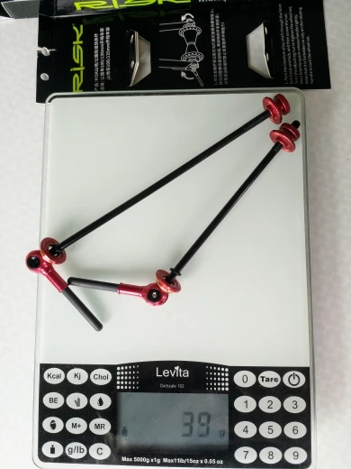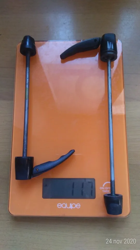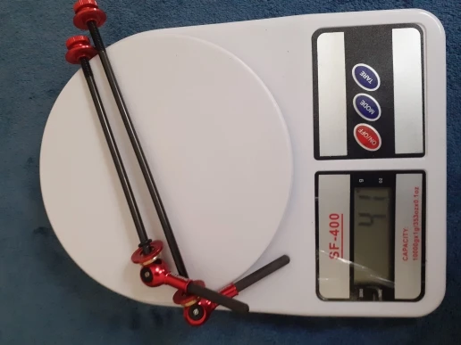 Подтвердите 40 г пары на моих кухонных весах. Оригинальная пара шампуров была 123 г на моем decathlon bike (rc120).