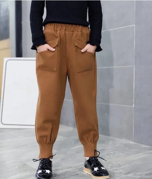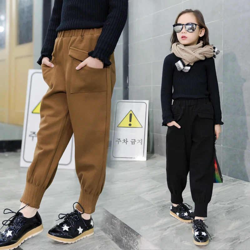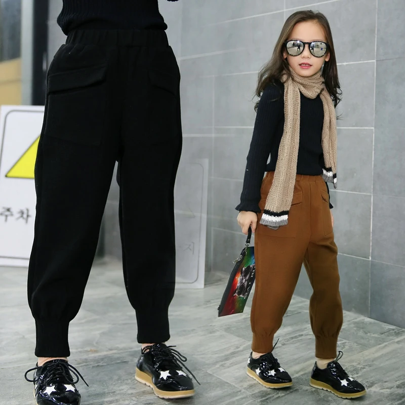 Весна 2022, детская одежда, штаны для девочек, однотонные шерстяные тонкие шаровары для маленьких девочек, свободные брюки для маленьких детей