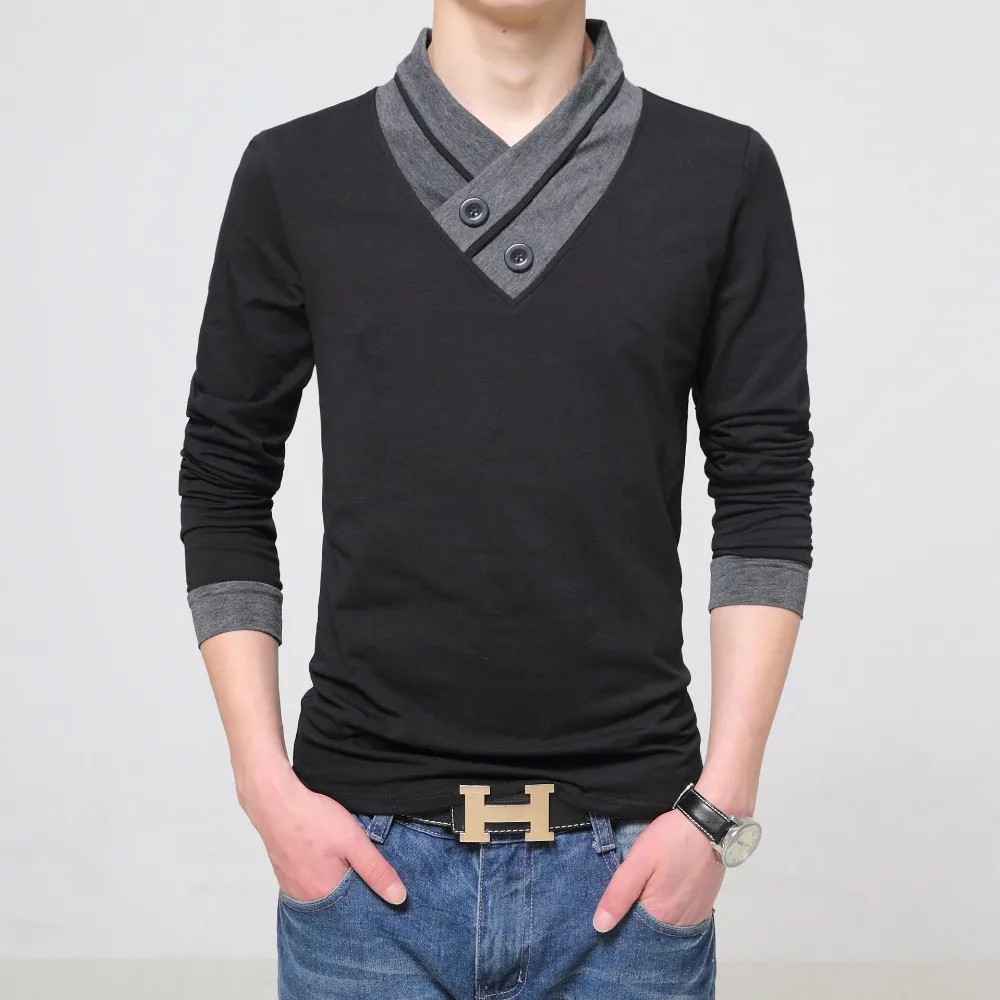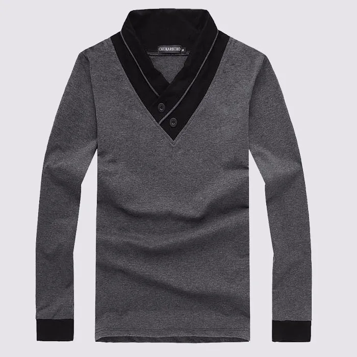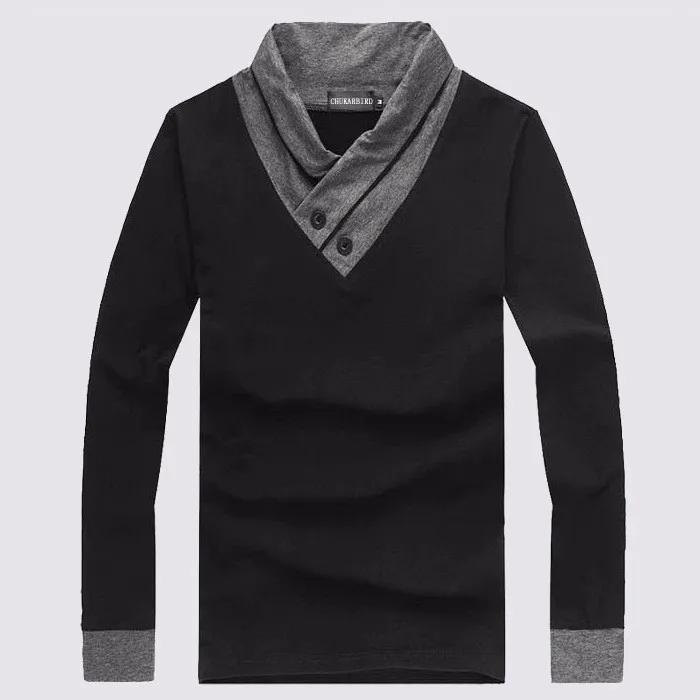Мужская футболка с длинным рукавом, с воротником-стойкой, размеры до 5XL