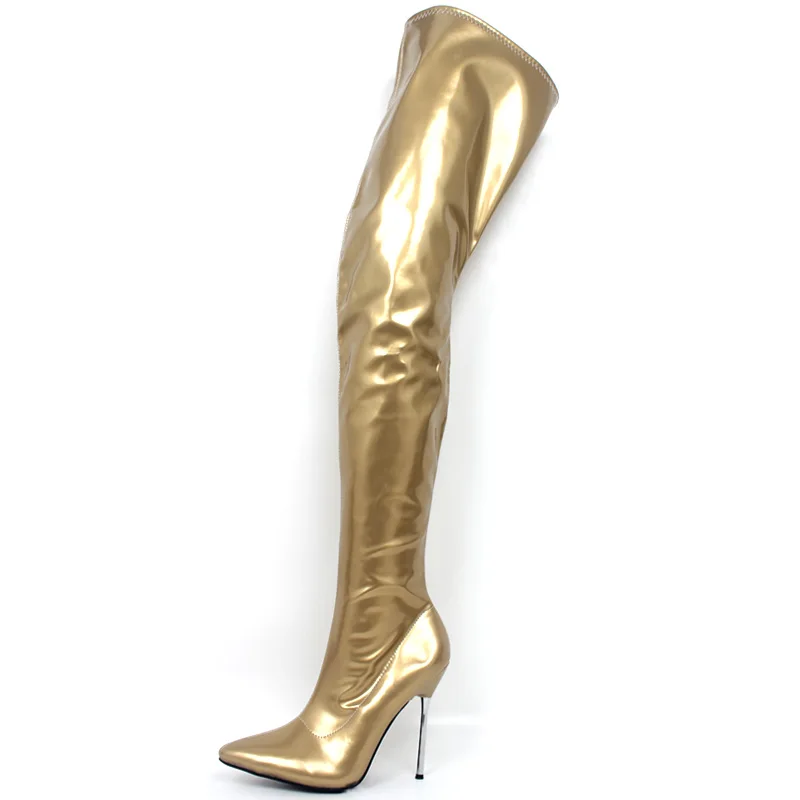 Сапоги-чулки женские из искусственной кожи, на очень высоком каблуке 12 см, из сапоги до промежности лакированной кожи, Блестящий Матовый