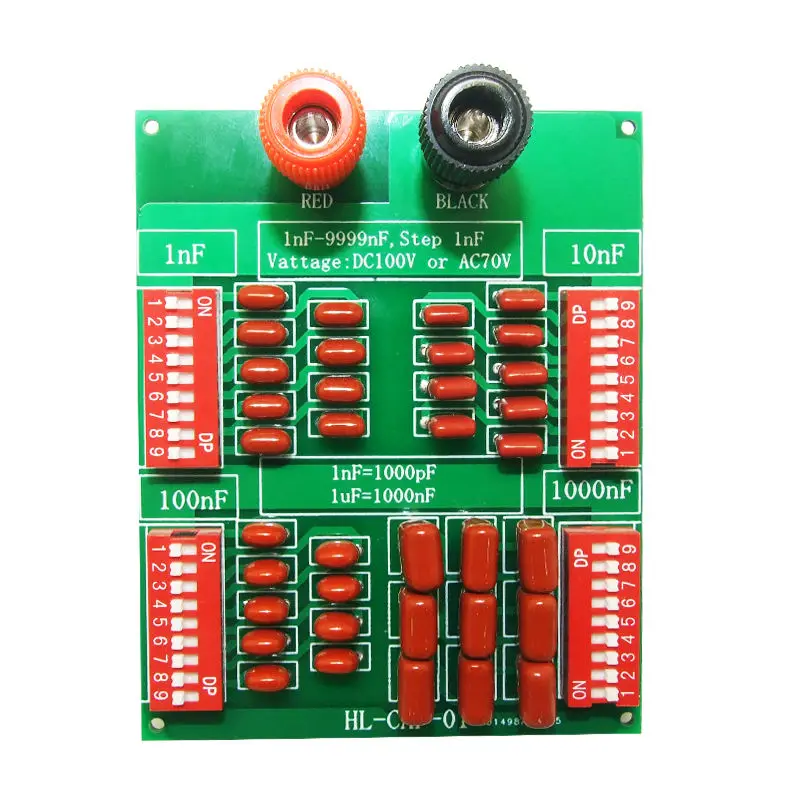 Особенности:Конструкция на основе теоремы «параллельный конденсатор».Допуск +/-5% 100 в Металлические пленочные конденсаторы.4 мм розетки банан с вилками, легко подключить провода.Высококачественная Стекловолоконная печатная плата FR4.